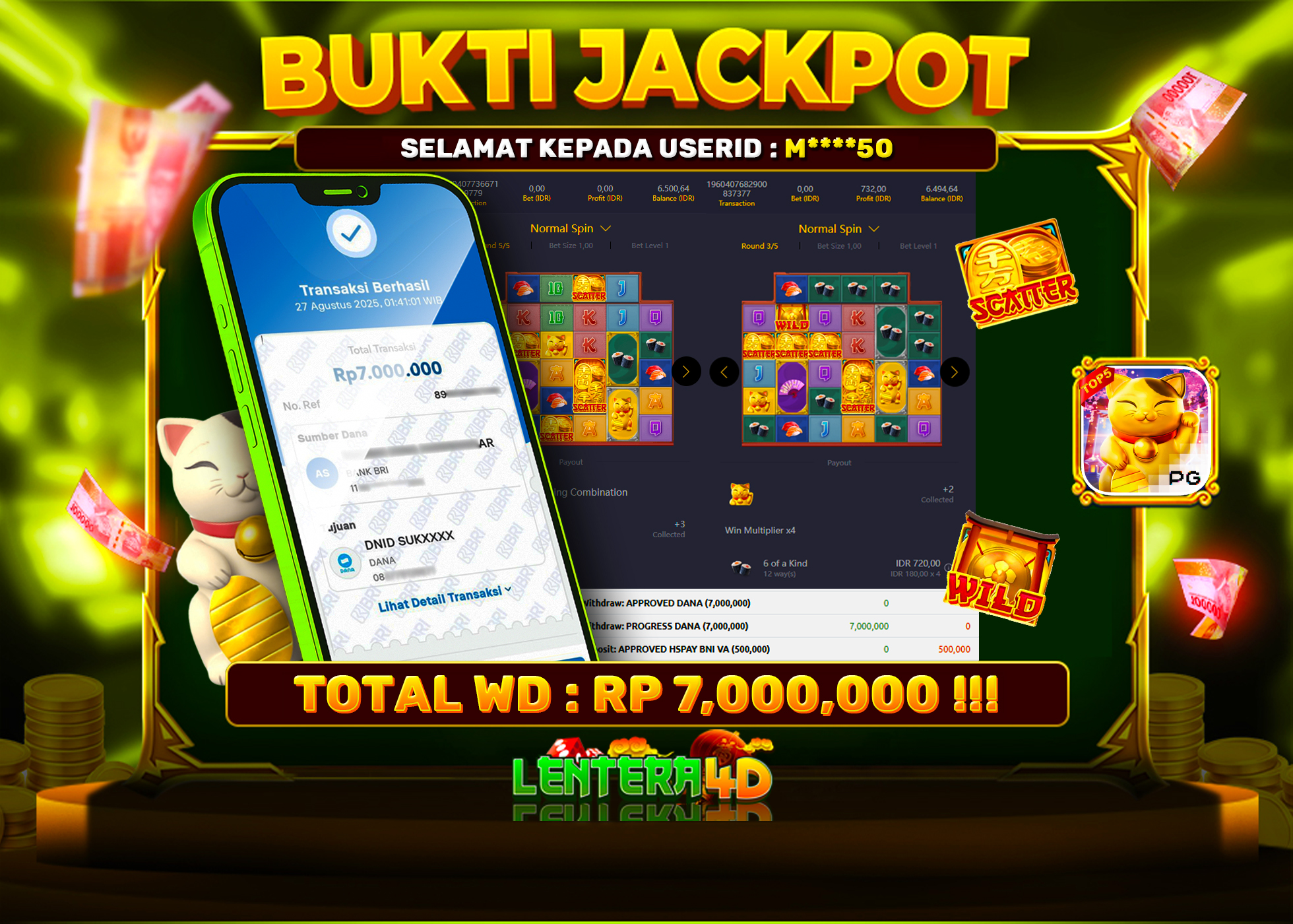 TOTAL KEMENANGAN : Rp 7.000.000,-