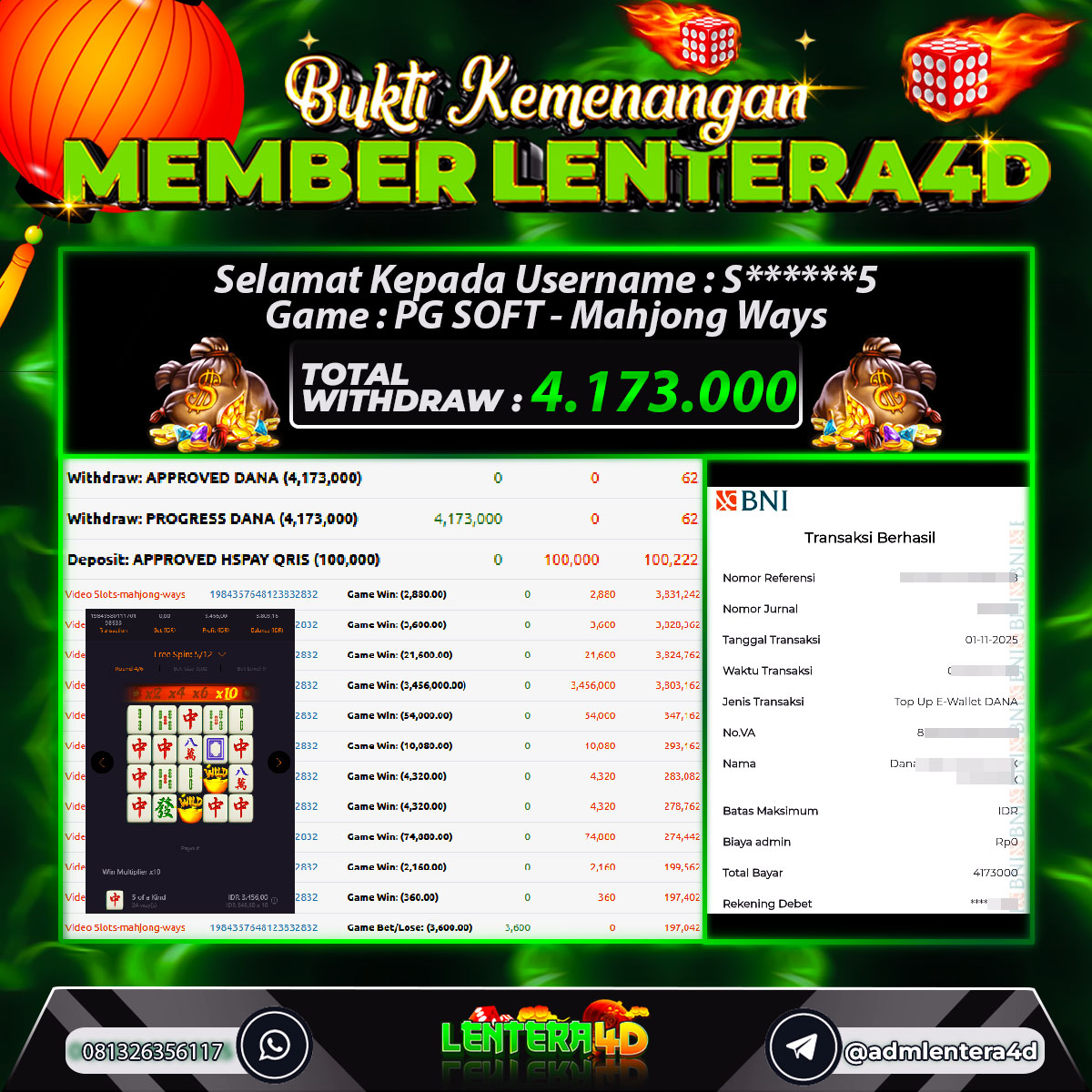 TOTAL KEMENANGAN : Rp. 4.173.000,-