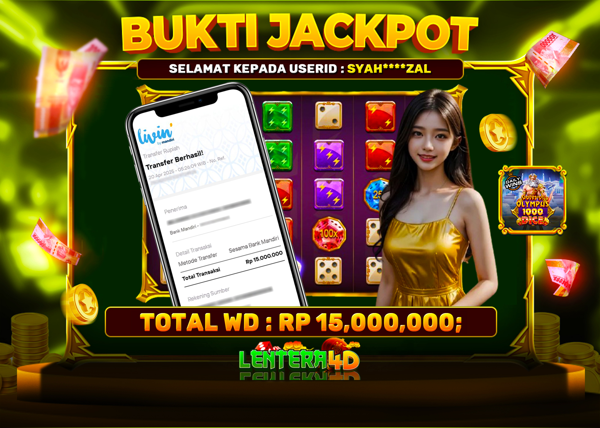 Satu lagi Bukti JP dan Pembarayan Sah Dan Dapat Dipertanggung Jawabkan, WD Berapapun Pasti Dibayar Lunas Hanya di Situs LENTERA 4D. Hati Hati Kepada Pihak Pihak Yang Mengatas namakan Pihak LENTERA4D Untuk Melakukan Penipuan.