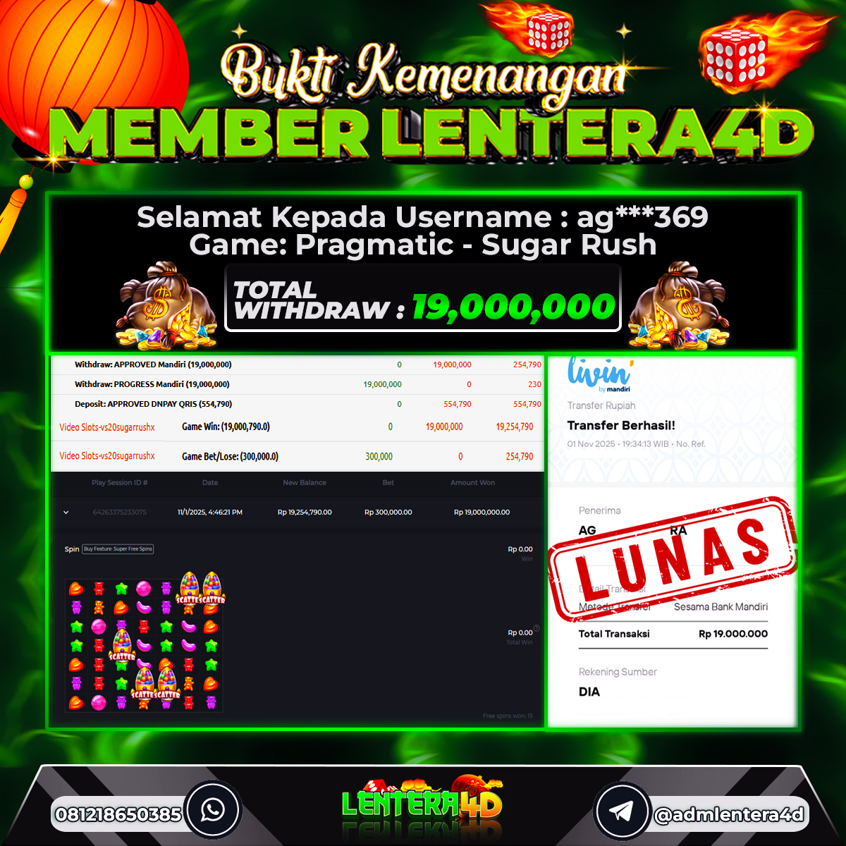 Satu lagi Bukti JP dan Pembarayan Sah Dan Dapat Dipertanggung Jawabkan, WD Berapapun Pasti Dibayar Lunas Hanya di Situs LENTERA 4D. Hati Hati Kepada Pihak Pihak Yang Mengatas namakan Pihak LENTERA4D Untuk Melakukan Penipuan.