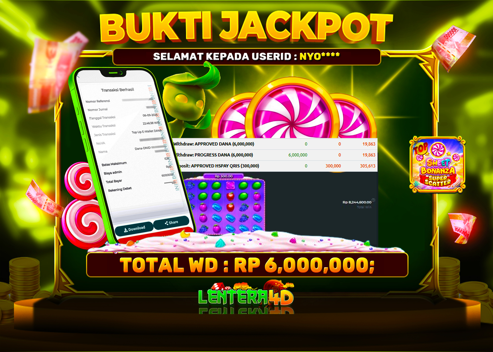 Setiap hari, member Lentera4D berhasil meraih jackpot besar dari berbagai provider slot ternama yang kami sediakan, seperti Pragmatic Play, Habanero, PG Soft, dan masih banyak lagi. Kami secara rutin menampilkan bukti screenshot atau rekapan kemenangan yang berhasil diraih, mulai dari kemenangan ratusan ribu hingga puluhan juta rupiah. Semua slip kemenangan ini kami hadirkan untuk membuktikan bahwa di Lentera4D, peluang menang itu nyata.