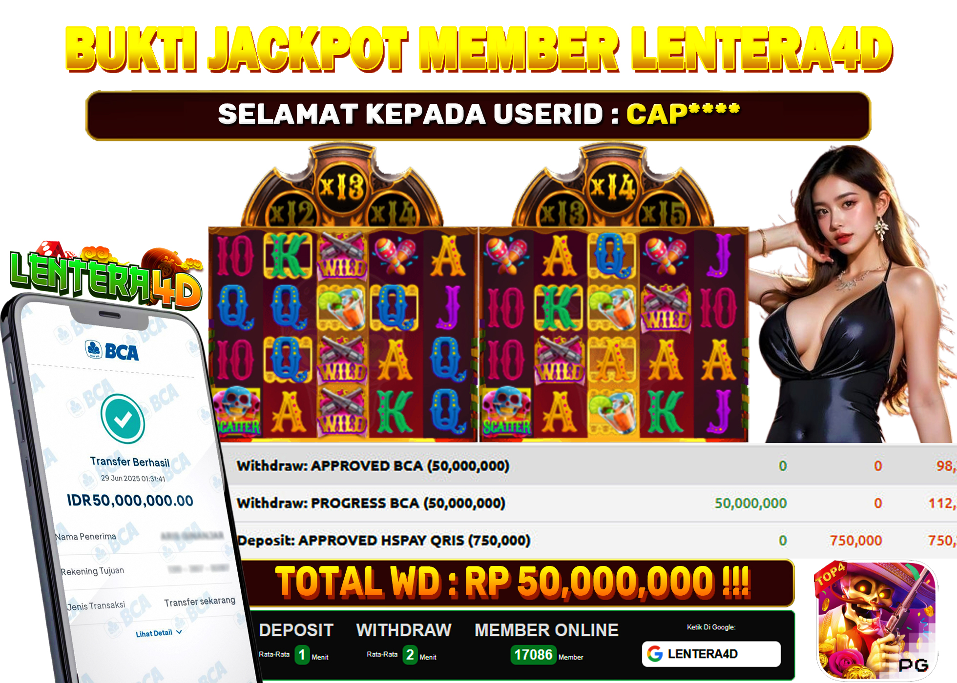 Setiap hari, member Lentera4D berhasil meraih jackpot besar dari berbagai provider slot ternama yang kami sediakan, seperti Pragmatic Play, Habanero, PG Soft, dan masih banyak lagi. Kami secara rutin menampilkan bukti screenshot atau rekapan kemenangan yang berhasil diraih, mulai dari kemenangan ratusan ribu hingga puluhan juta rupiah. Semua slip kemenangan ini kami hadirkan untuk membuktikan bahwa di Lentera4D, peluang menang itu nyata.